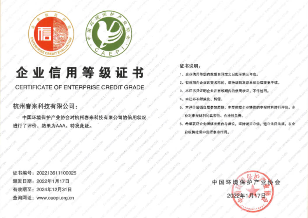 中環(huán)協(xié)環(huán)保企業(yè)信用評(píng)價(jià)AAA級(jí)